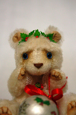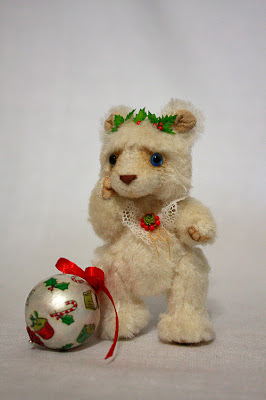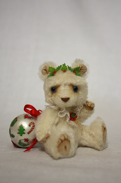 Это первое рождество Амели. Сегодня она впервые наряжала елку и сватила самую большую елочную игрушку. На голове у нее веночек из омелы, так как она очень любит поцелуйчики.)